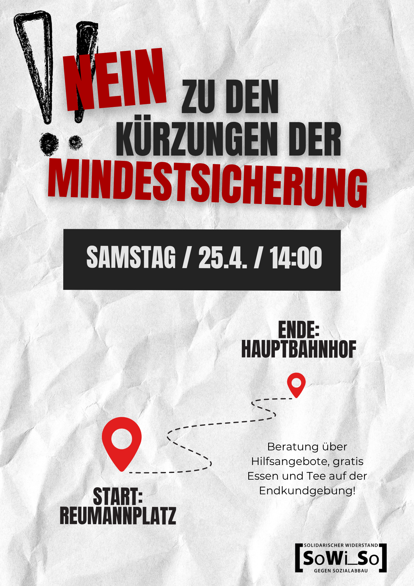 Die Kürzungen der Mindestsicherung treffen die Schwächsten – Menschen in WGs, subsidiär Schutzberechtigte und Kinder. Sie treiben in Armut und nehmen ein würdiges Leben. Komm zur Demo und setz ein Zeichen gegen Sozialabbau!